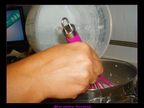Vertimos sobre el molde que vayamos a usar ( si es de cristal poner una cuchara que toque el cristal para que no se nos rompa).