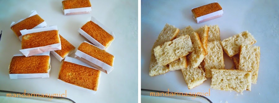 Corta los sobaos por la mitad y ponlos por encima del molde, tapando la crema por completo. Deja que se enfríe del todo y luego ponla en la nevera unas 8 o 10 horas, mejor de un día para otro.
