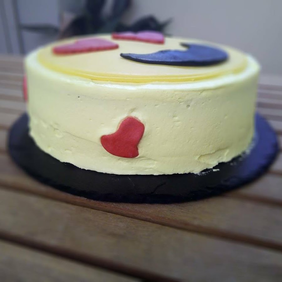 Hice una base amarilla, con un cortador los corazones y luego la boca, es muy sencilla!!y la colocamos directamente sobre la nata (crema de leche), el fondant es el que más me gusta, tiene sabor a sugus ummmmm.....