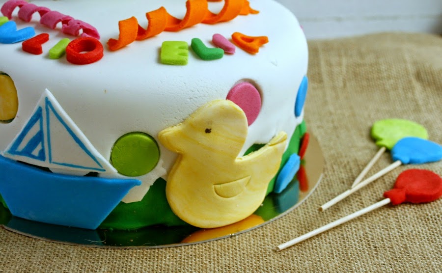 La verdad es que el resultado me gusto mucho, vi que la tarta de cumpleaños quedaba muy alegre, y era justo lo que buscaba. Alegría por cumplir los 4 añitos. Alegría, colorido, movimiento : los aditivos para pasar una fiesta de cumpleaños por todo lo alto.