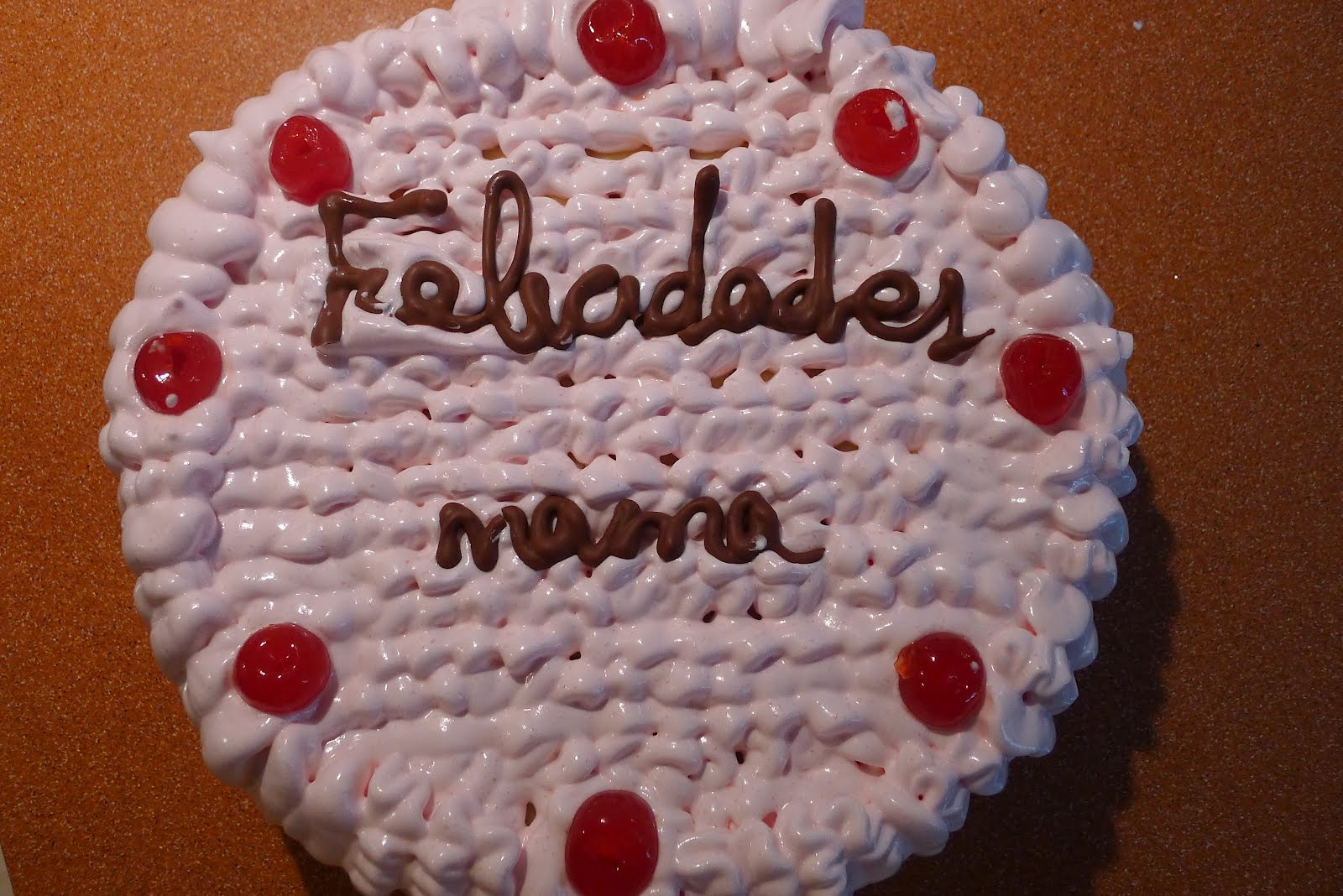 Esta es la tartita que le hice a mi madre por su cumple.Suelo hacerlas de pisos de bizcochos,la tipica vaya,ya que es la que mas les gusta.Tambien podriamos llamarla express ,ya que no me complico mucho y suelo comprar las bases ya hechas,asi aceleramos el procedimiento y el resultado es bueno ,que el tiempo es oro!