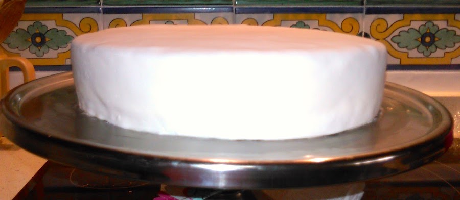 Estiramos nuestro fondant y cubrimos nuestra tarta.