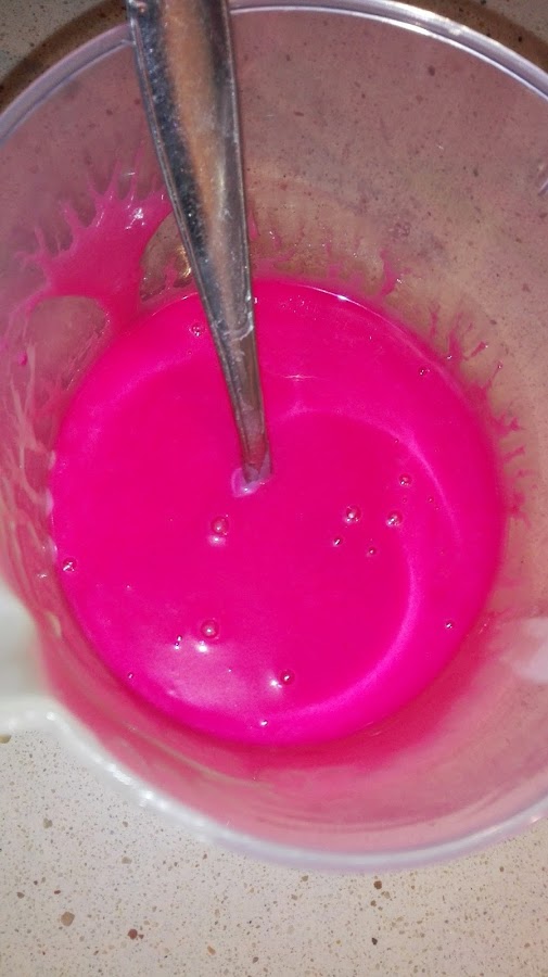 Ahora dividimos nuestra masa en tres boles, en uno de ellos echamos unas gotas de colorante negro, en otro unas gotas de colorante rosa y en le otro lo dejamos tal y como está (ya depende de los colores que queramos usar).
