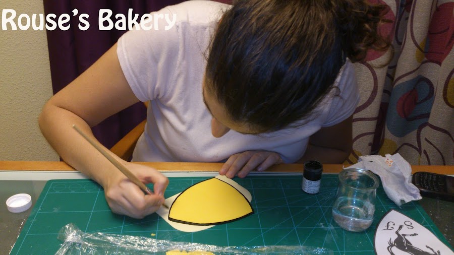 Lo que más gustó fue el escudo, que se salvó de la destrucción, y lo sacamos de la tarta para conservarlo... (menos mal!! me daba penita que lo cortasen... joooo)
