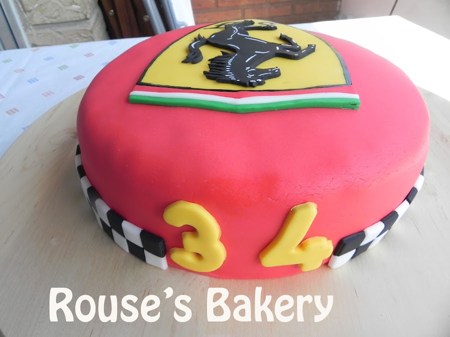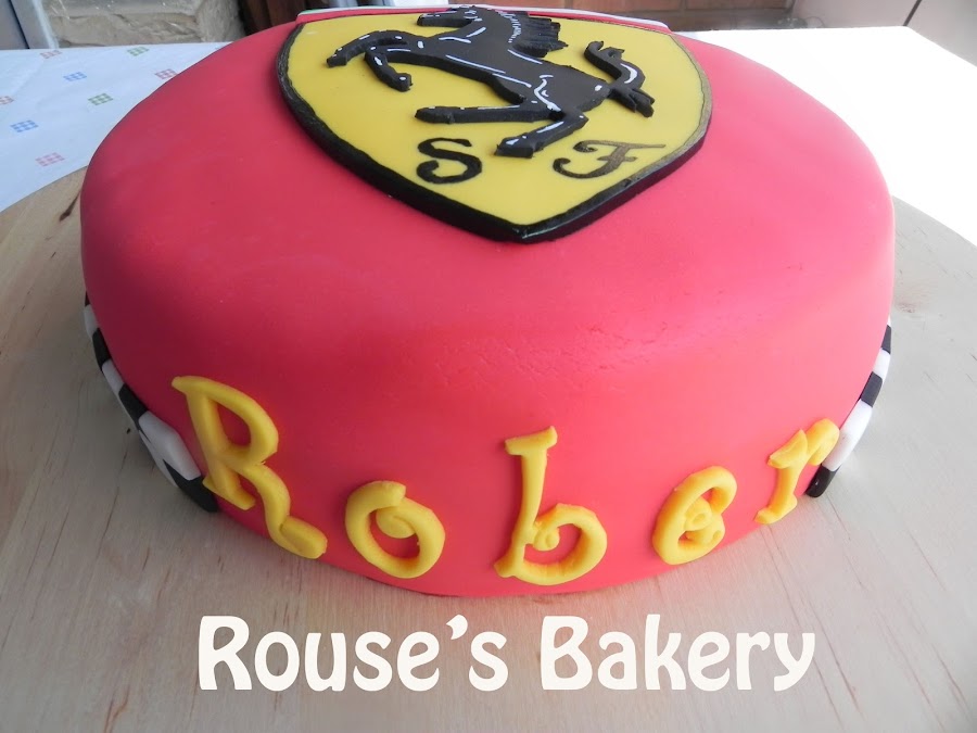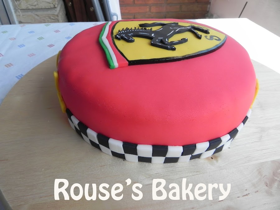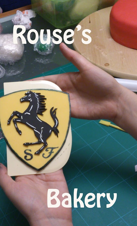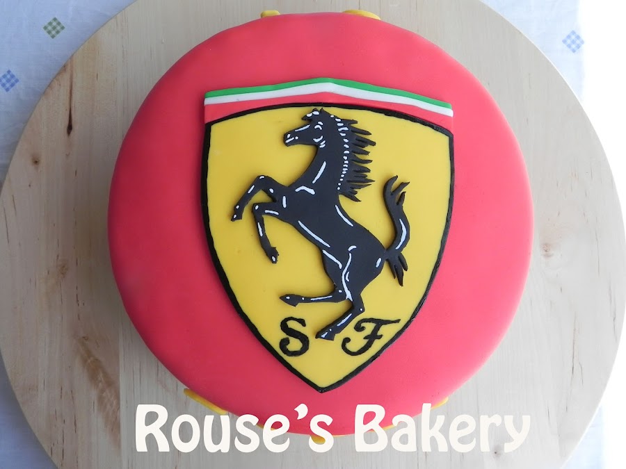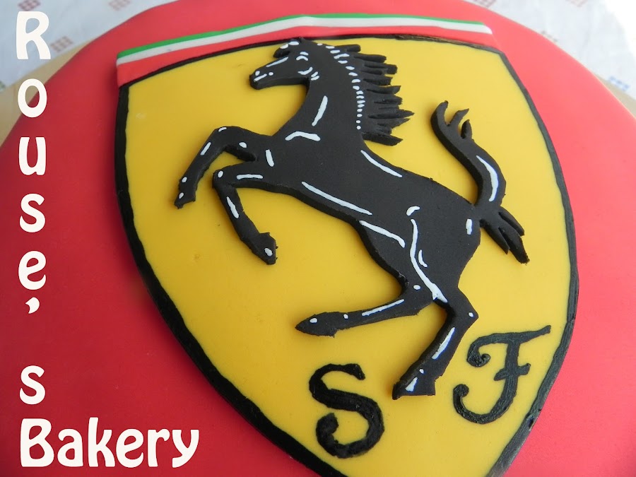 Mi amigo Roberto es un gran forofo, fanático, seguidor de Ferrari... y siempre lleva algún polo, o algo de esta mítica marca. Su tarta tenia que ser necesariamente de su escudería predilecta!!