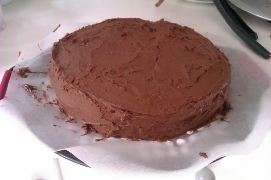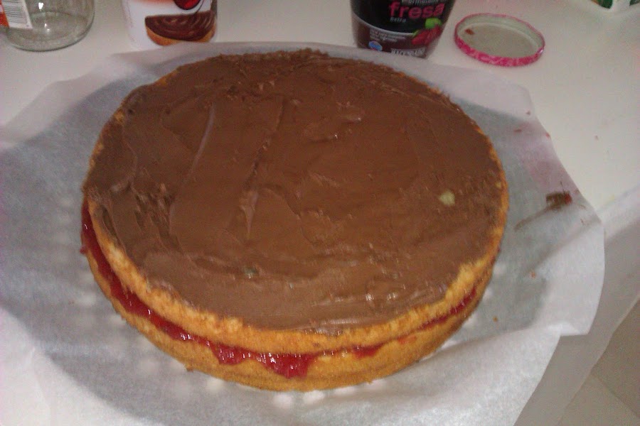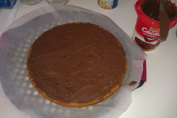 La siguiente y última es, otra de bizcocho mojado también y una capa de nocilla que se extenderá por todos los laterales del pastel.