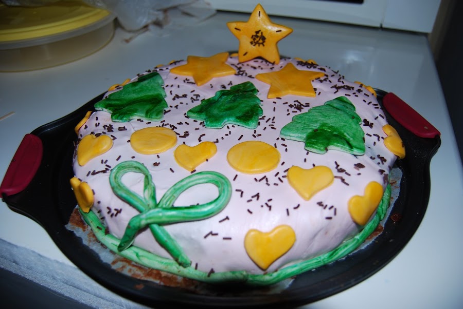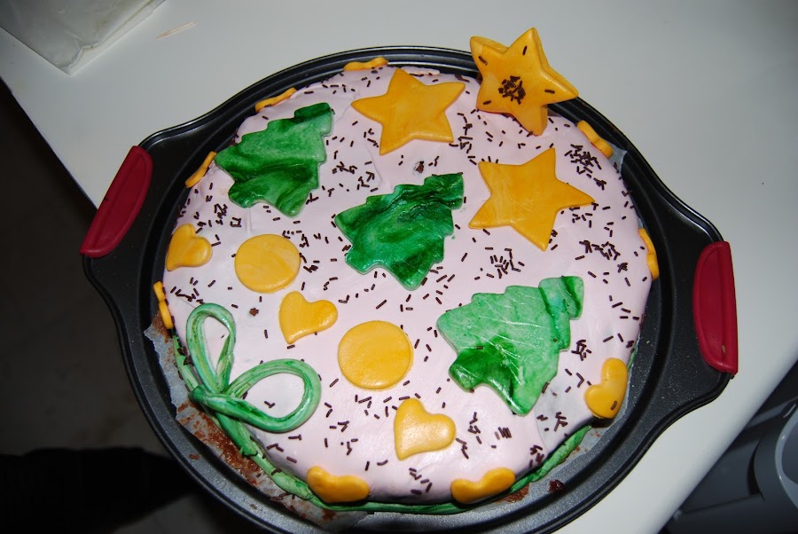 Finalmente nos quedará una tarta así, que cada uno podrá decorar a su gusto.