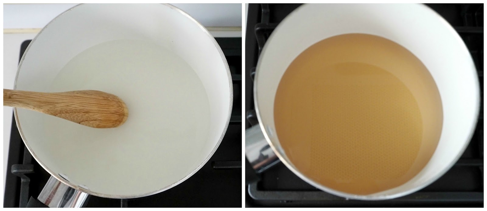 - El almíbar lo podemos preparar mientras hacemos el bizcocho. Simplemente ponemos en un cazo el azúcar y el agua y esperamos a que hierva. Cuando empiece a hervir, añadimos la esencia de vainilla, dejamos uno o dos minutos más y retiramos del fuego. Reservamos.