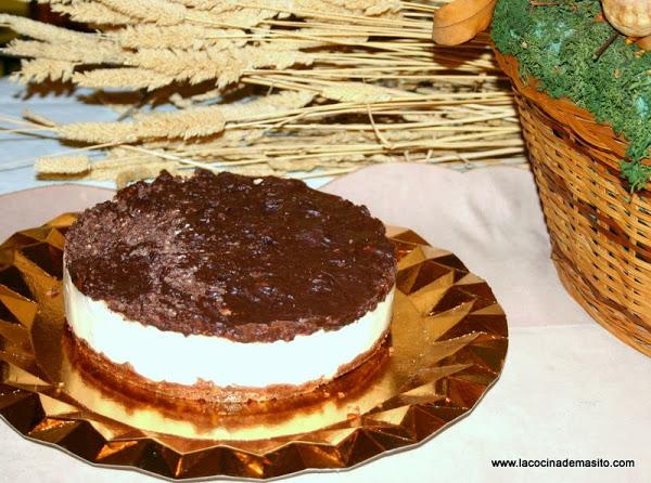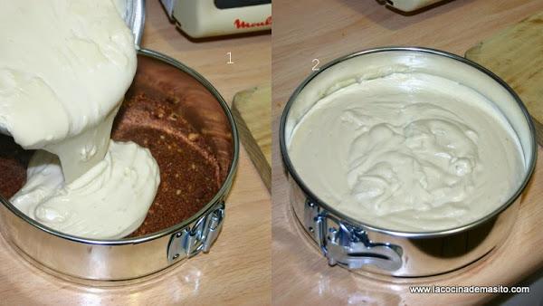 vertemos esa mezcla en el molde con la galleta y de nuevo a la nevera hasta que preparemos la cobertura