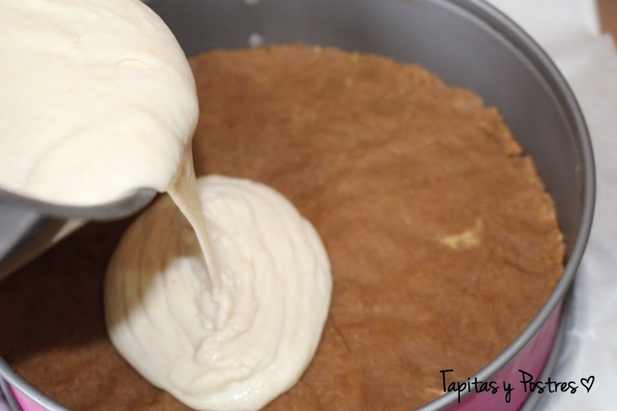 Vertemos sobre la base de galletas y dejamos enfriar antes de meter en la nevera unas horas.