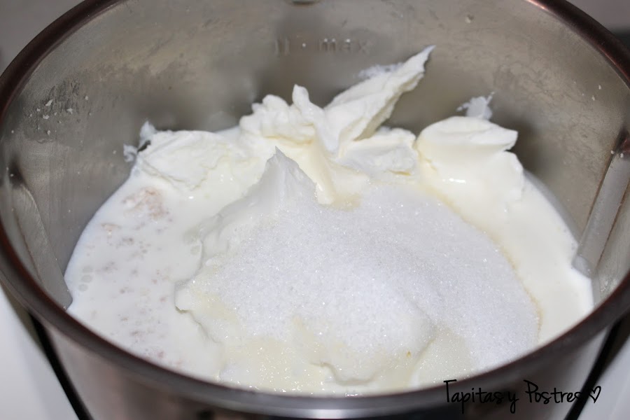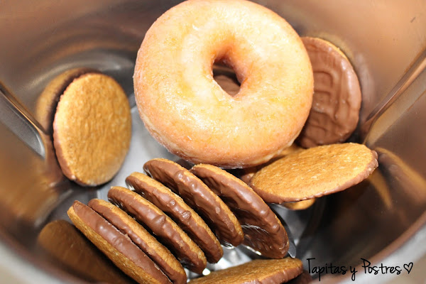 Ahora vamos con la crema. Primero trituramos los donuts.