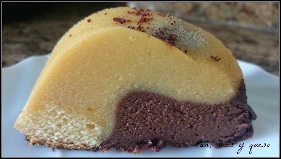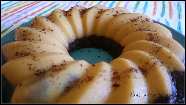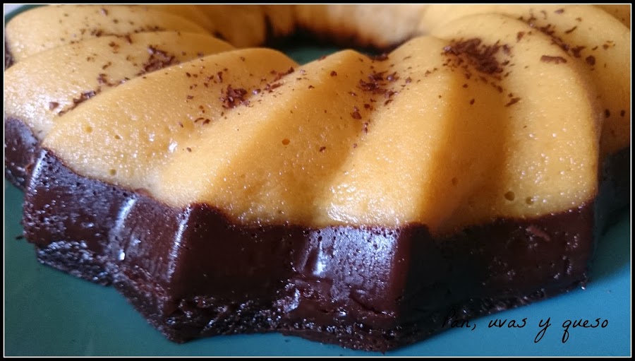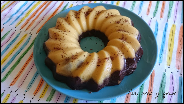 Hace tiempo había guardado un bizcoflan de chocolate y brownie de "Corazón de Caramelo" y me pareció la opción ideal. Fácil de preparar y con un resultado muy vistoso. Pero algo fallódurante la elaboración, ya que las capas del bizcoflan debían invertirse durante la cocción y las mías se quedaron como estaban.