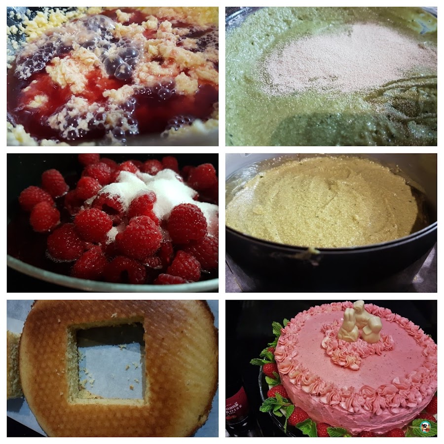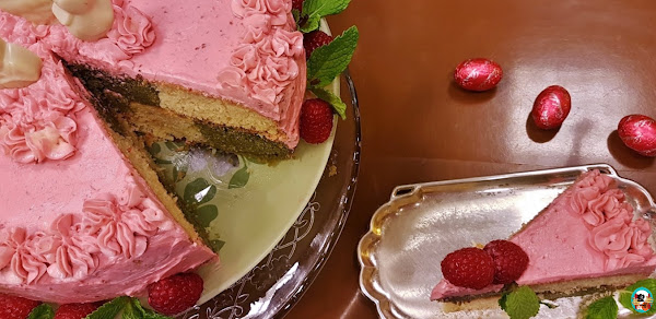 La tarta de hoy la hice el viernes pasado para Daskalidès chocolatier canarias; una tarta que lleva dos tipos de bizcochos; un bizcocho con té verde y cerveza Lindemans Frambuesa. La cerveza aporta un magnífico aroma de la fruta y hace que el bizcocho tenga un sabor especial, ofreciendo matices ácidos de la fruta. El segundo bizcocho lo hice con zumo de limón y limoncello. Con una exquisita crema de una mermelada de frambuesas que hice y marine con la propia cerveza de frambuesas, y mantequilla.