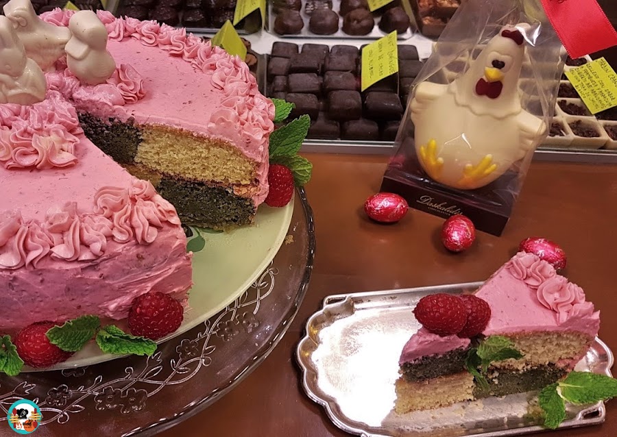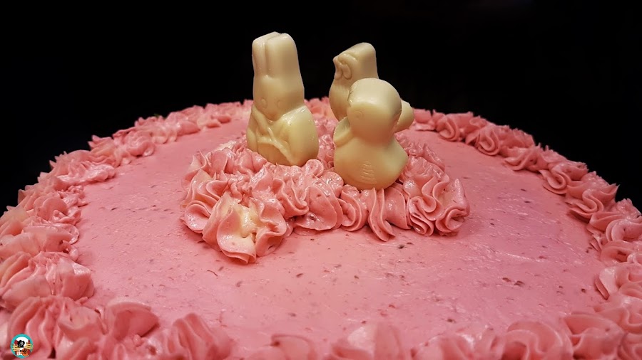 Decore la tarta con unos bombones de pascua de chocolate blanco.