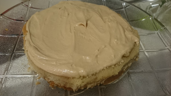 Ponemos una fina capa de la buttercream entre capa y capa y cubrimos toda la tarta con una capa delgada para atrapar las posibles migas, metemos en el frigorifico durante media hora.