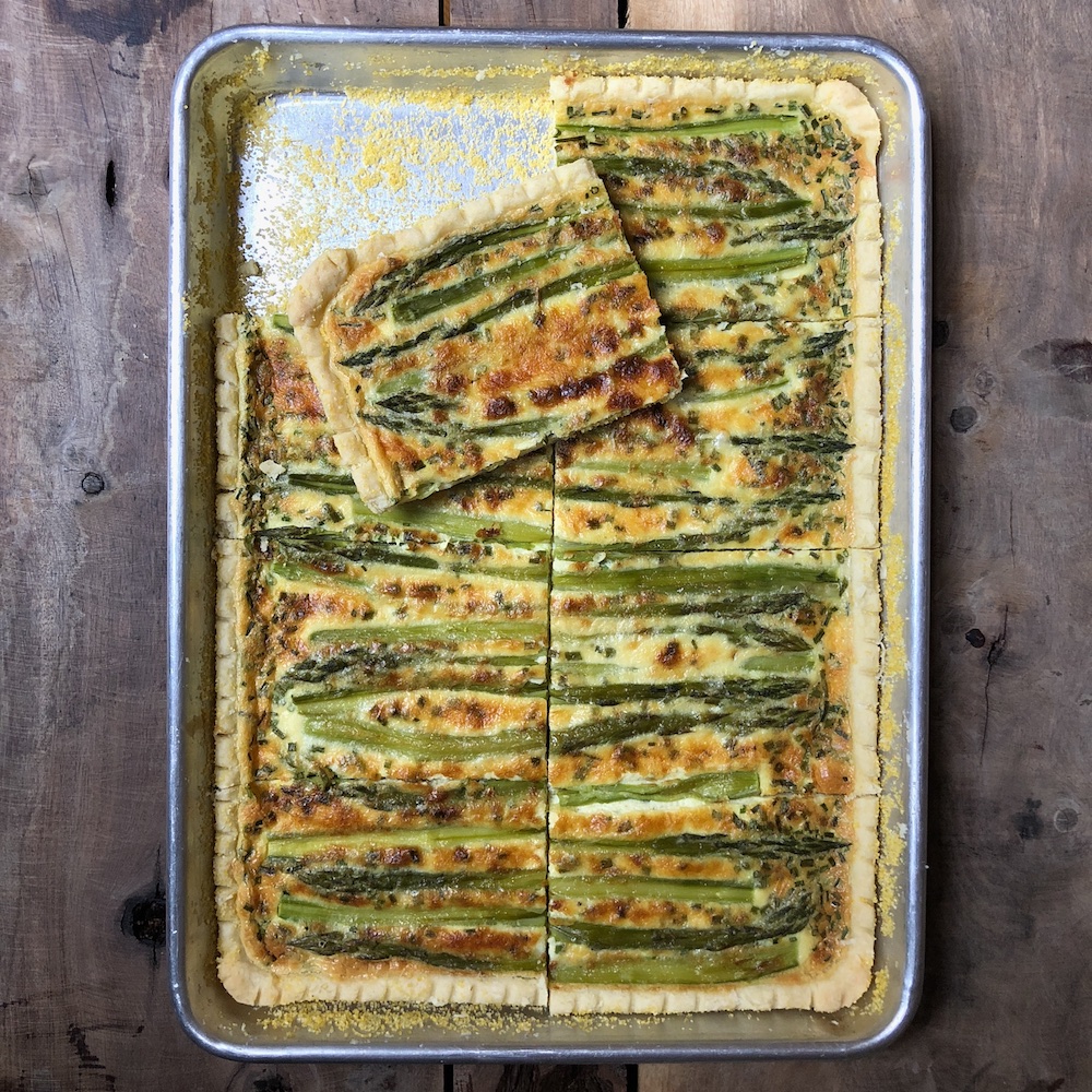 Receta de tarta de espárragos muy fácil de preparar. Con masa quebrada casera, masa brisee y un relleno con queso Mascarpone y espárragos que es realmente facilísimo de preparar. Esta tarta o quiche de espárragos puede realizarse con masa de tarta comprada y la mezcla líquida del relleno puede ser utilizada como relleno base de tarta salada para realizar con diferentes vegetales en lugar de los espárragos, como por ejemplo champignones, hongos portobello, brócoli. Una receta elegante exquisita para incluir en fiestas u ocasiones especiales.