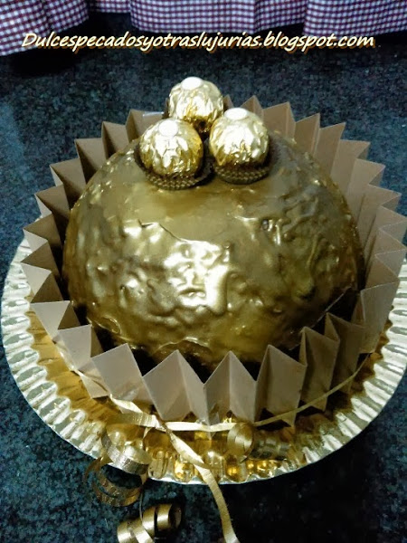 Por último añadimos los Ferreros. Yo prefiero partirlos por la mitad y no ponerlos enteros, pero es a gusto de cada cual.
