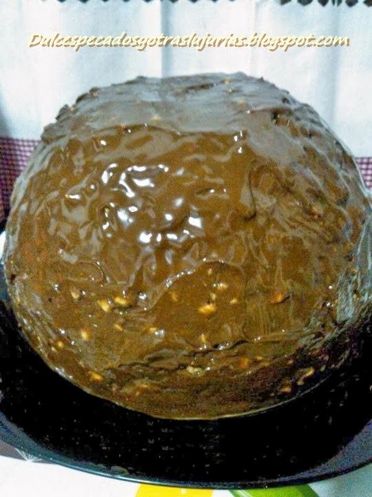 Cuando tengamos nuestra cobertura tibia lo cubrimos todo de chocolate y lo ponemos a enfriar en la nevera.