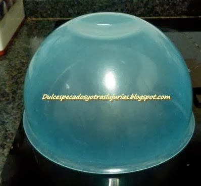 Lo primero es buscar un molde adecuado. Normalmente no tenemos ninguno totalmente redondo pero podemos usar algo similar. Yo tengo este bol de plástico que es casi, casi perfecto.