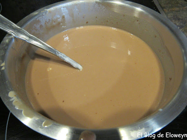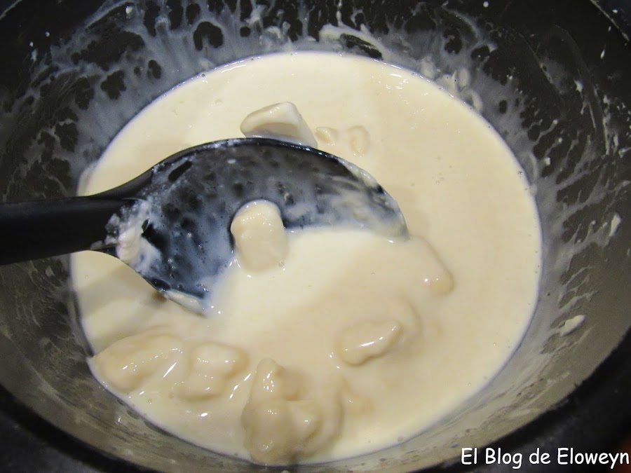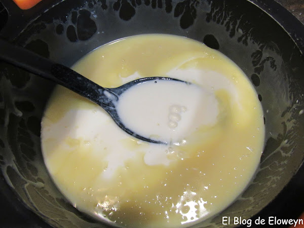 Una vez derretido, añadimos la mezcla de la leche con el sobre de cuajada que habíamos reservado antes.