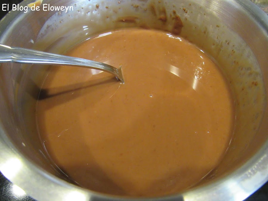 Ponemos el cazo a fuego lento y vamos removiendo sin parar para que no se nos queme el chocolate.