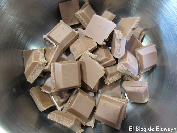 A continuación, partimos en trozos los 200 gramos de chocolate con leche y los ponemos en un cazo.
