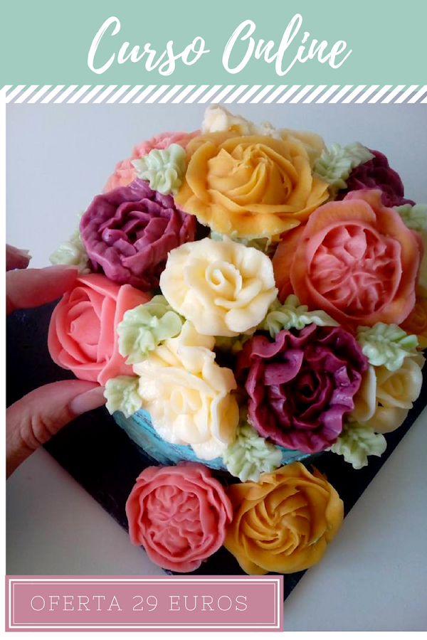 O llévatelo por 5 Euros más junto con el curso online de cupcakes con flores que será el complemento ideal para aprender a hacer otros estilos de flores de crema: margaritas, ranúnulos, flores de cerezo, poinsettias, paniculata, pequeños capullos...