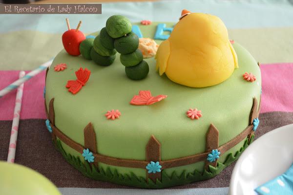 Y este año volví a caer en la trampa y le pregunté qué personajes le gustaban a Laia... Y su respuesta fue: el pollo Pepe, la pequeña oruga glotona y las mariposas. Menos mal que me lo dijo por whatsapp, por que habría flipado con mi cara de ¿eso que es? ¿y como meto yo todo eso en una tarta? jajaja. Es lo que tiene no tener peques en casa, que todo te suena a chino.