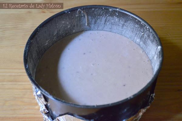 Pon a precalentar el horno a 180ºC, calor arriba y abajo y engrasa el molde con un poco de mantequilla o aceite y harina. Yo utilicé un molde redondo de 20 cm.