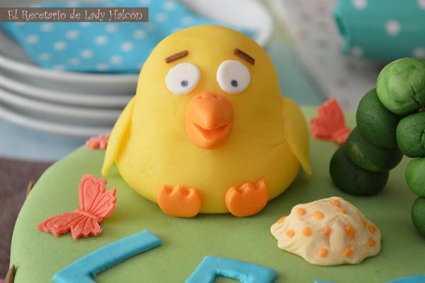Así que de nuevo me puse a investigar quienes eran estos dos personajes ¡y resulta que son súper famosos entre los pequeños! Menos mal que encontré un montón de dibujos que me sirvieron de inspiración y el resto ya fue fruto de una divertida tarde con el fondant ¡me lo pasé mejor que un niño pequeño con la plastilina! jajaja. El pollo Pepe, como no, también me salió fofisano... Pero lo mejor de todo es que Laia los reconoció y le encantó su tarta de cumpleaños. Así que ¡misión cumplida!
