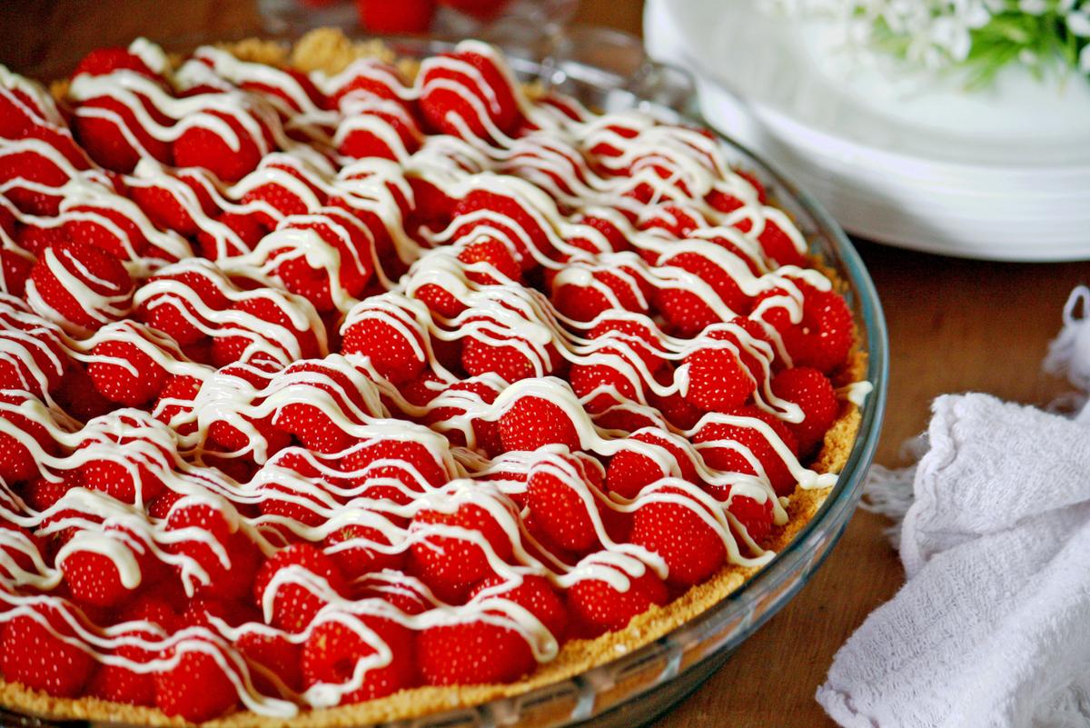 Puedes usar frambuesas frescas o congeladas. Si usas las congeladas, puedes colocarlas en la tarta justo antes de servir.