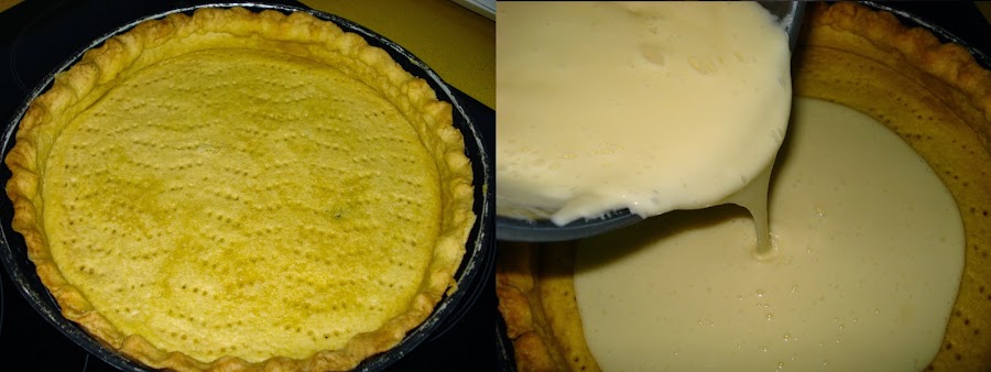 Vertemos la crema pastelera sobre la tartaleta de masa quebrada fría y dejamos enfriar.