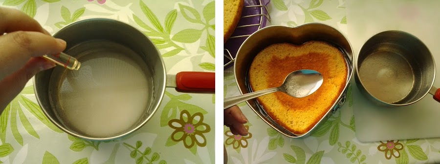 Haz un almíbar para calar el bizcocho: Calienta el agua y la esencia de ron con el azúcar hasta que ésta se disuelva. Una vez esto ocurra, apaga el fuego y deja enfriar un poquito.