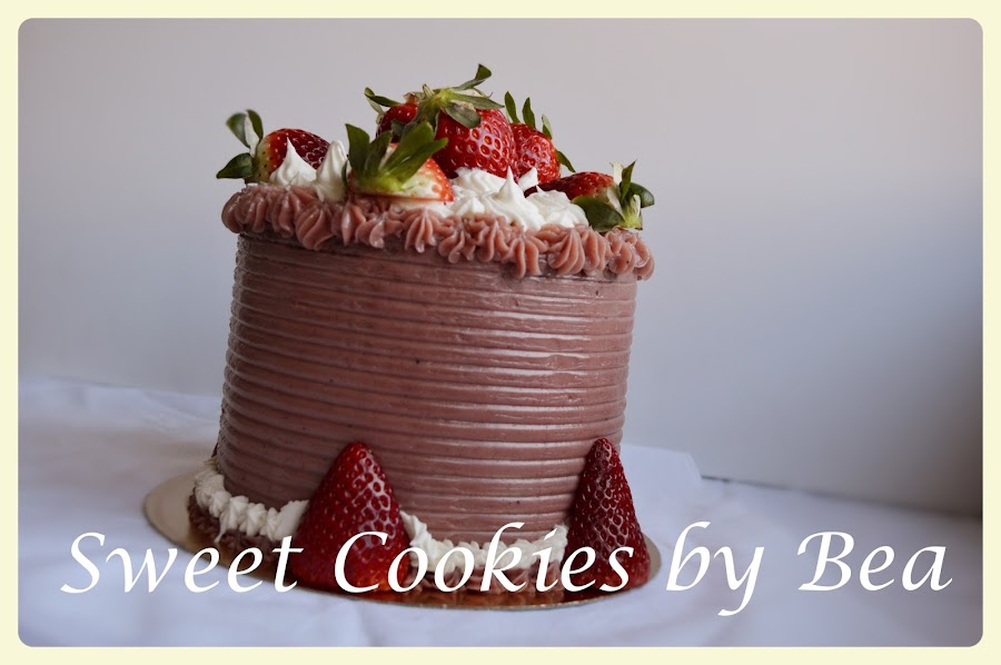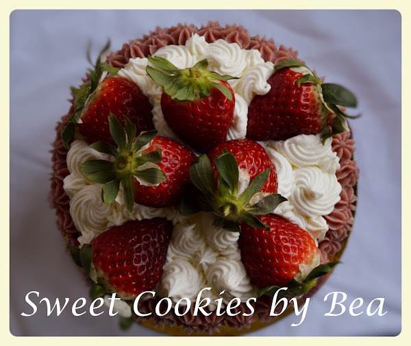 Y no puse mas fresas porque la tarta era pequeñita que sino...