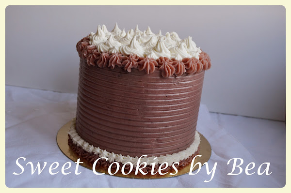 Ponemos un bizcocho, una capa de crema de fresa, otro bizcocho, una capa de nata (crema de leche) y otro bizcocho, cubrimos con la crema de fresa y decoramos un poquito con la manga