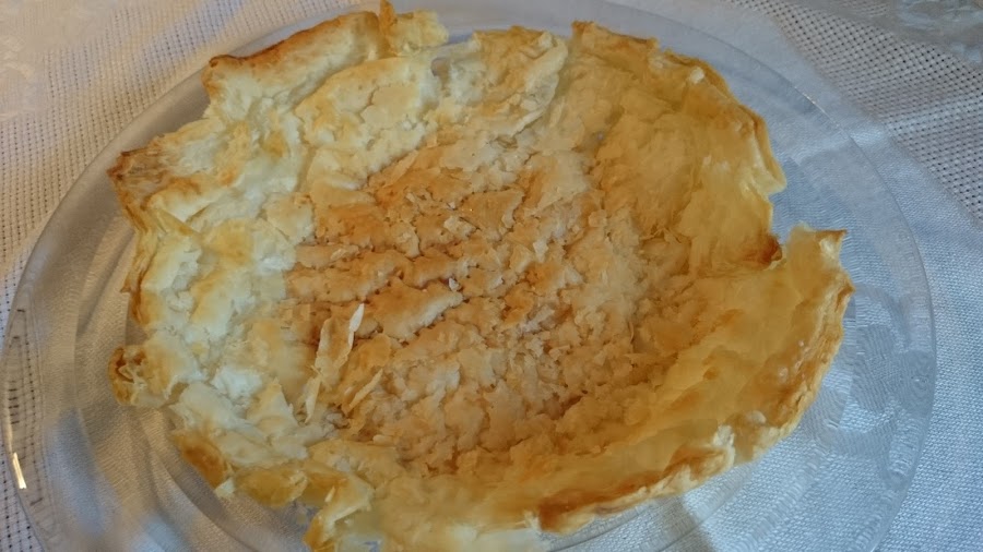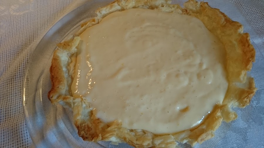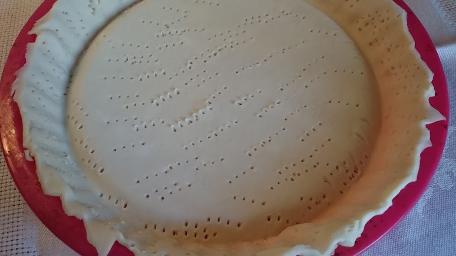 Untar un molde con mantequilla y cubrirlo con la masa ,pinchar para que no suba y hornear hasta que este doradita.