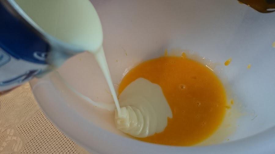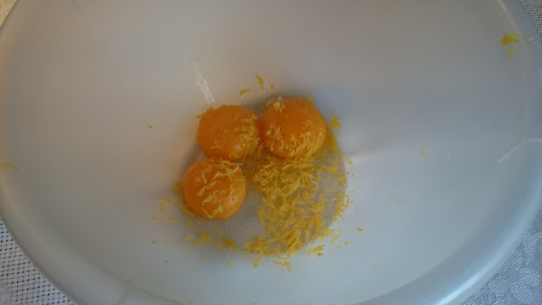 Hacer la crema batiendo las tres yemas con la ralladura del limón,