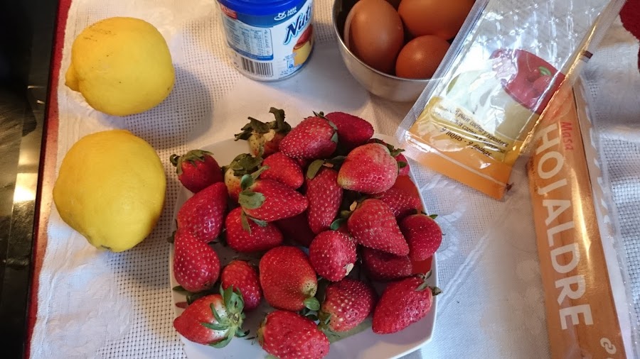 ¿ Quien no ha hecho alguna vez una tarta de fresas? Estoy segura que si la habéis hecho, pero esta es diferente !!!! porque esta rellena de una deliciosa crema de limón.