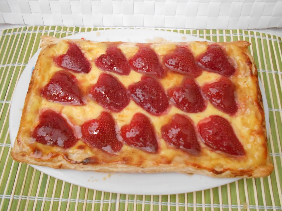 Hoy os comparto esta sencilla receta de tarta de fresas con hojaldre y crema pastelera.