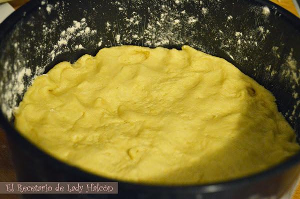 Ponla en el molde y estírala bien con los dedos o una cuchara para que se pegue bien a las paredes del molde (procura que te quede algo más lisa que a mi jajaja).