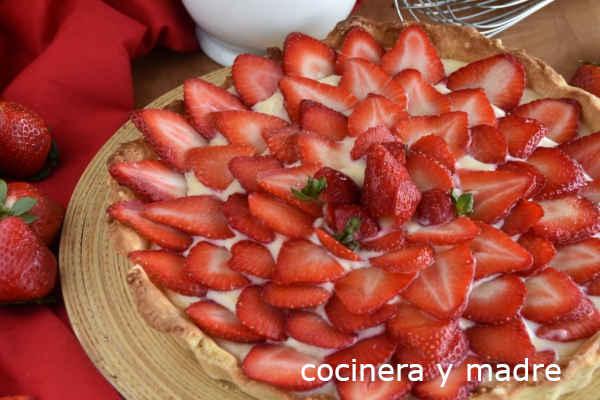 Dificultad: fácil Raciones: 8 – 12 Tiempo: 40 minutosIngredientes de la tarta de fresas y crema pastelera: