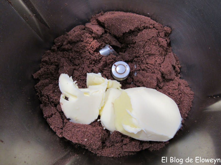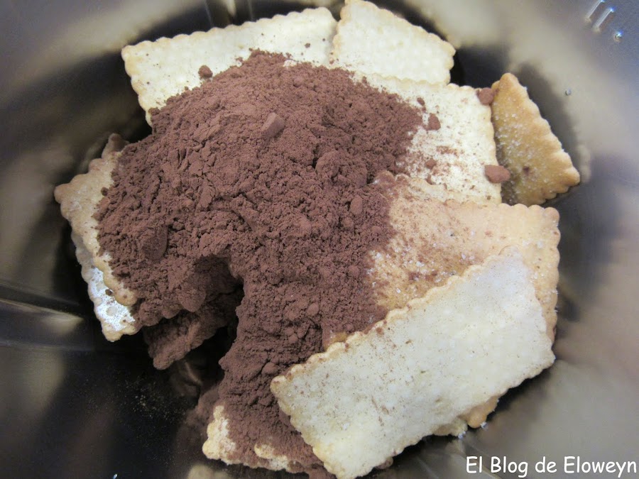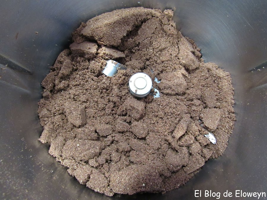 Sin Thermomix: Picamos las galletas y el cacao hasta que tengamos una consistencia como esta: