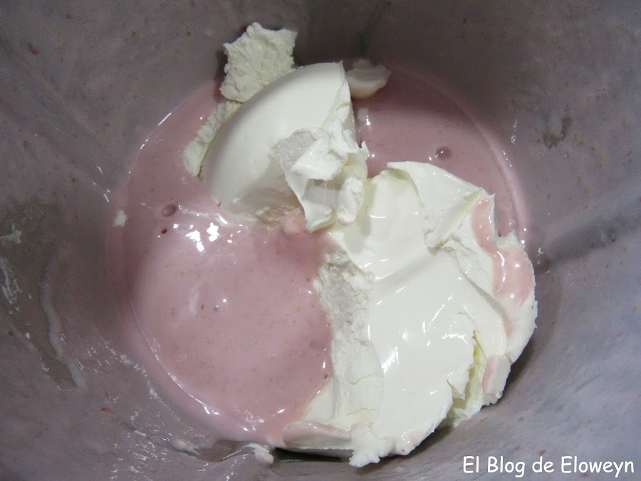 Con Thermomix: Si habéis hecho igual que yo y habéis dejado la mezcla con las fresas en la Thermomix y habéis montado la nata (crema de leche) con varillas (KitchenAid o robot con accesorio de varillas), mezclamos 20 segundos, velocidad 10.