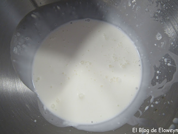 Con Thermomix: Yo dejé la mezcla en la Thermomix y usé la KitchenAid para montar la nata (crema de leche), pero si queréis montar la nata (crema de leche) con la Thermomix, podéis hacer lo siguiente: Retiramos la mezcla y la ponemos en un recipiente. Lavamos el vaso de la Thermomix, ponemos la mariposa y 430 gramos de nata (crema de leche) líquida.