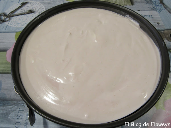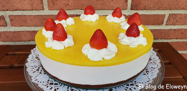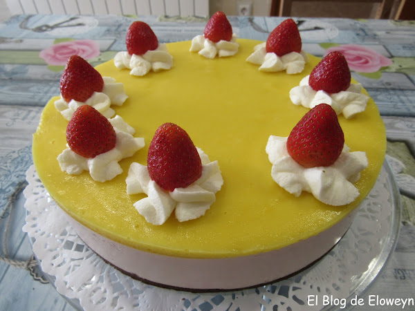 Esta tarta de fresas y mango está inspirada en la receta de la tarta mousse de arándanos del blog "En mi salsa cocina". En cuanto vi la tarta mousse de arándanos, me planteé hacerla tal cual, pero a en mi casa los arándanos sólo me gustan a mi...