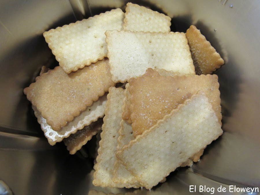 Primero comenzaremos con la base. Podemos usar la Thermomix o una picadora. Ponemos los 200 gramos de galletas Napolitanas en el vaso de la Thermomix o en la picadora.