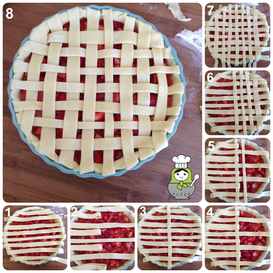 8. Recortamos la parte sobrante de las tiras y cerramos la tarta metiéndolas entre la base y el molde.