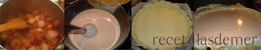 Cuando la masa la hayamos horneado un poquito vertemos el relleno cubriendo todo, y horneamos durante 250 min a 180 ºC.