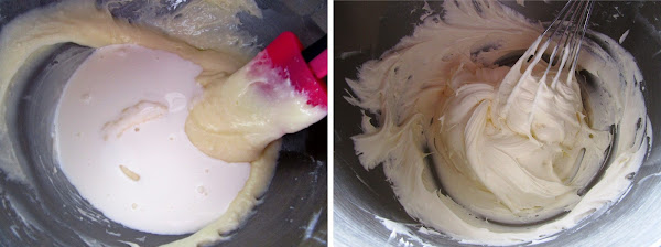 Para el bizcocho he utilizado la receta de un Sinuás o bizcocho base. Esta vez no he incluido muchas fotos, pero si tenéis dudas sobre su elaboración, podéis echar un ojo en la entrada sobre el "Bizcocho Sinuás" o en el post sobre "Cómo elaborar masas batidas ligeras". Por cierto, puede que os suene la crema de queso que acompaña a los fresones, porque ya la utilizamos en su día para rematar unos deliciosos "Cupcakes de zanahoria especiados con crema de quesoMascarpone". Está tan rica, que a veces la preparo simplemente para acompañar un buen tazón de fresones. ¡Probádlo!. ¡Os va a encantar!.