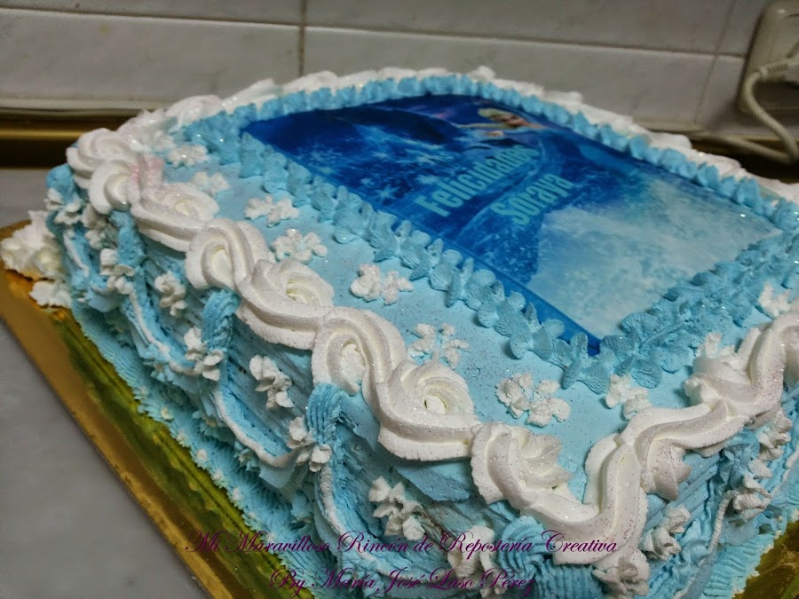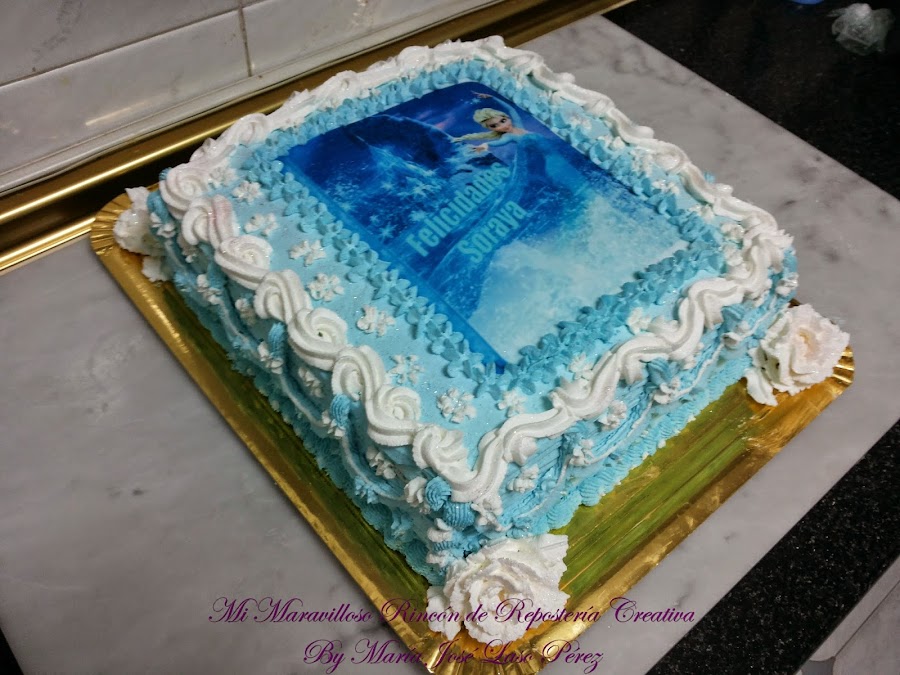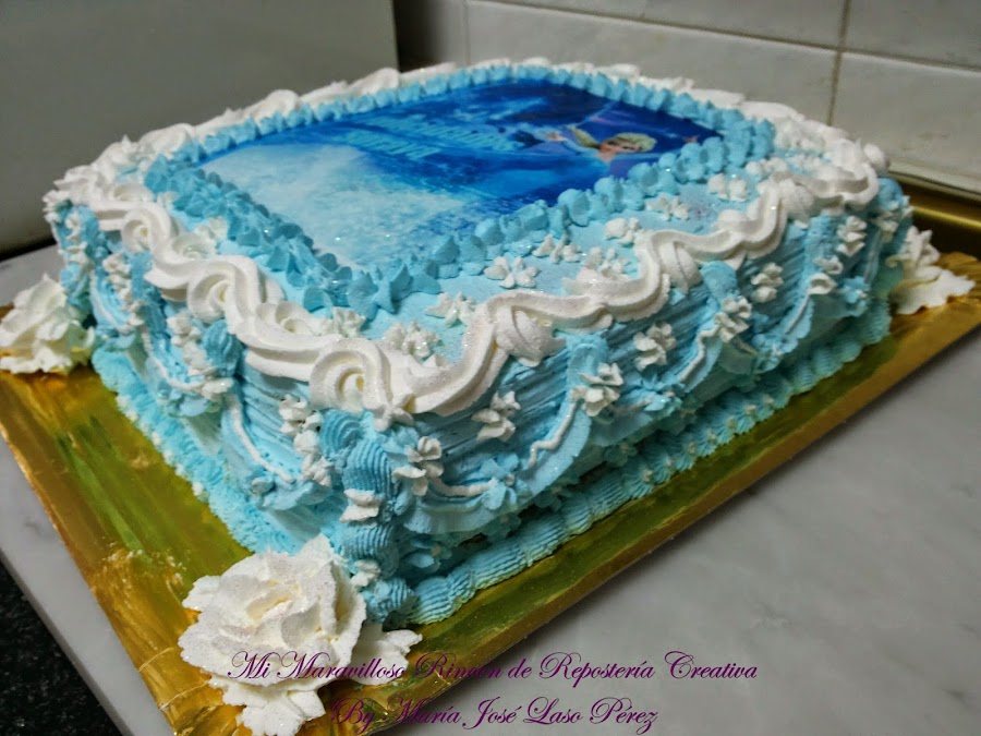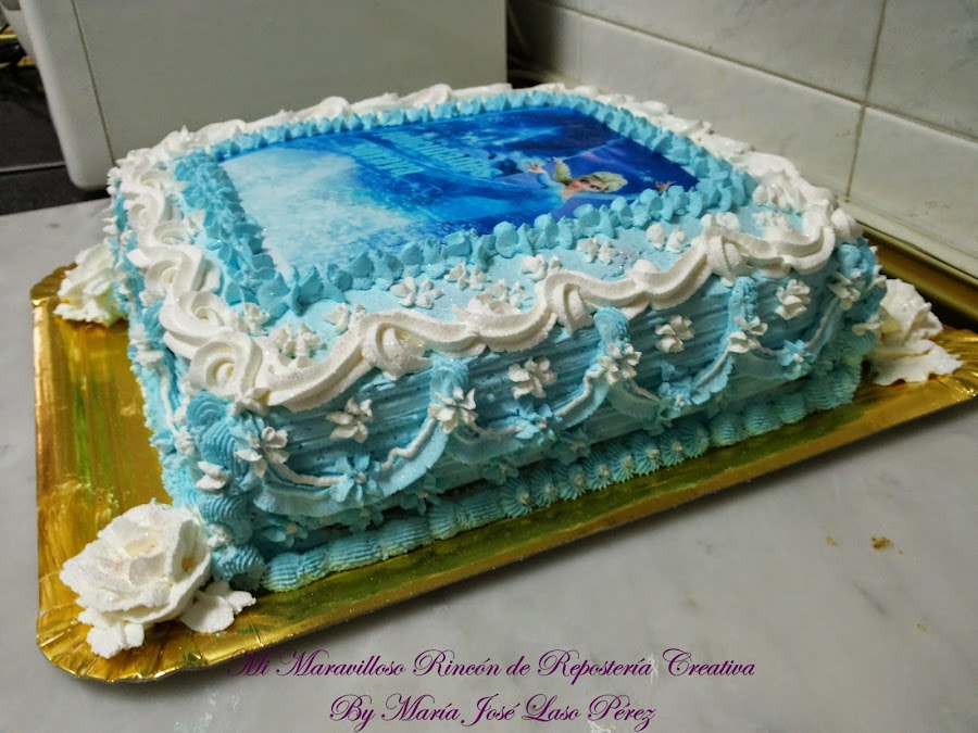 El año pasado también le hice su tarta de FROZEN (si quieres verla pincha aquí). No era fácil volver a hacerle otra tarta del mismo tema, no quería volver a repetirme. A mi niña le gusta la nata (crema de leche) como a mí y decidí hacérsela de nata (crema de leche), eso estaba claro.